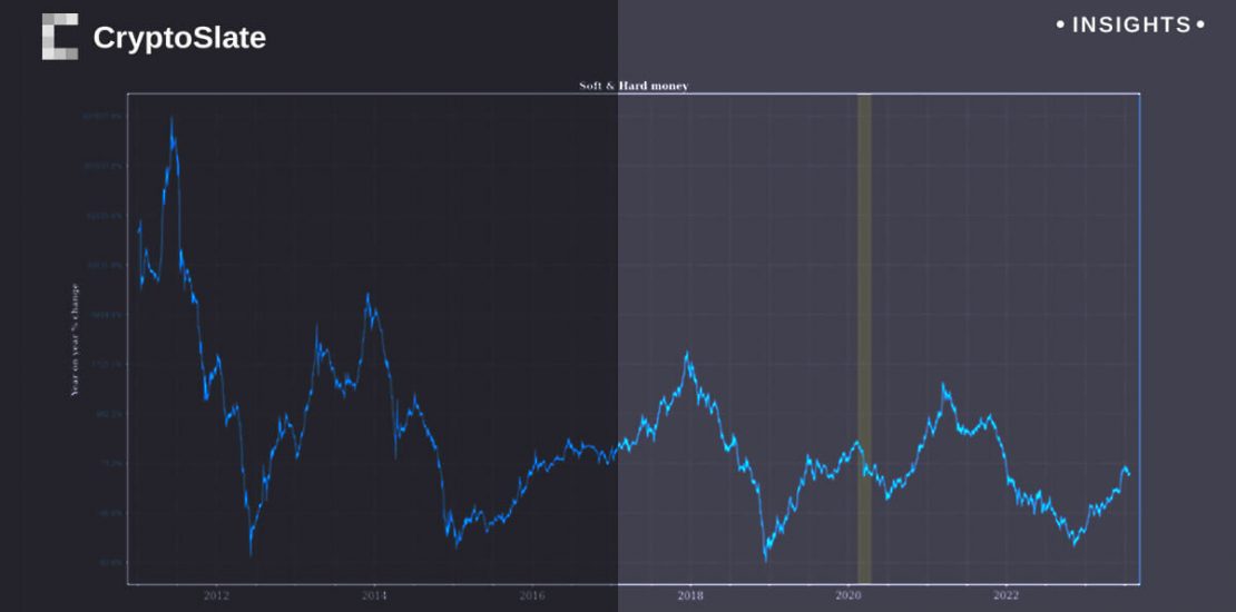 Subsequently, in late 2017, Bitcoin experienced a YOY percentage change of 2,000%. The most recent bull run in 2021 demonstrated a peak percentage change of approximately 1,000%.